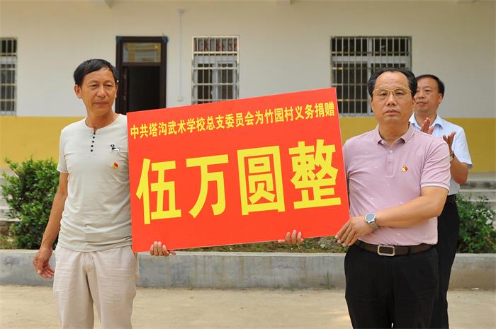 扶贫济困是中华民族的传统美德,乐善好施、助人为乐是社会倡导的时代新风。7月8日上午,塔沟武校党总支书记刘海科带领支部书记到颍阳镇竹园村捐赠五万元扶贫资金,受到了颍阳镇党委书记雷新亚的高度赞扬以及村民代表的热烈欢迎。