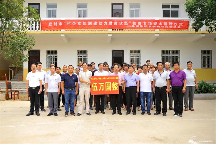 本次捐赠仪式,是塔沟武校党总支积极响应国家扶贫政策,落实中共登封市委关于“村企支部联建、助力脱贫攻坚”工作,抓党建促脱贫、以党建带团建的生动实践。