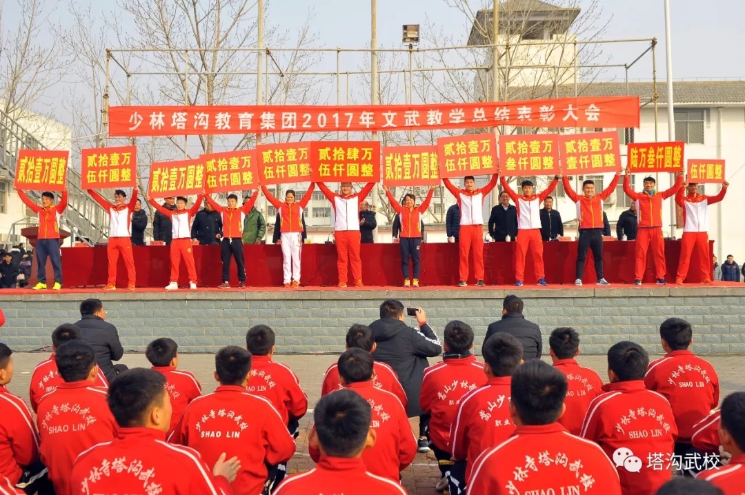 少林塔沟教育集团2017年总结表彰大会隆重举行 12月29日上午,少林塔沟教育集团2017年文武教学工作总结表彰大会在二号练功场隆重举行。集团董事会领导和各教学单位……