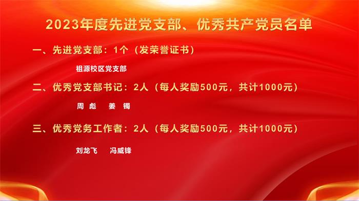 嵩山少林武术职业学院院长刘少鹏宣读《郑州少林塔沟教育集团关于表彰2023年度先进单位(处室)和先进个人的决定》。