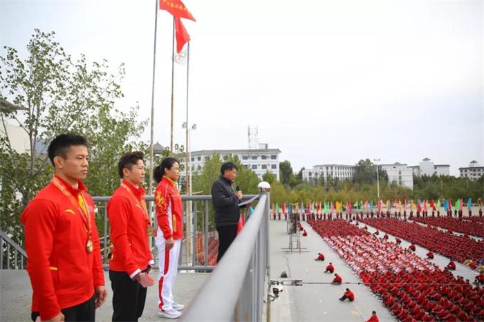 参加世界武术散打锦标赛并获得冠军的申国顺、李玥瑶以及带队教练孟丽于今日回到塔沟武校,接受母校三万多师兄弟的热烈欢迎!
