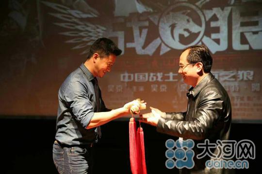 《战狼》来郑路演 主演吴京邀春晚搭档观影 塔沟武校总教练刘海科赠吴京少林剑 吴京展示少林剑 吴京与春晚搭档塔沟武校的学员合影 3月30日下午,郑州奥斯卡……