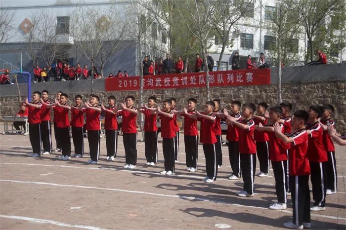 2019年3月31日上午,塔沟武术学校竞训处组织的队形队列比赛在大禹校区篮球场举行。