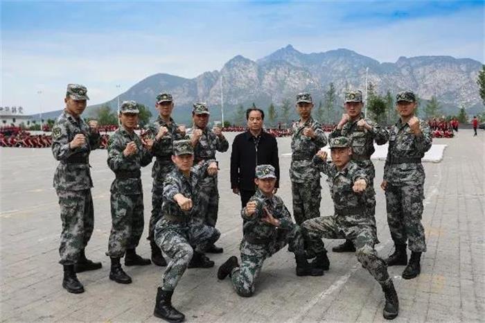 5月8日,经过三次集训的十名特种兵,在塔沟武校演武场上站成一排,飒爽英姿,整装待发。少林塔沟教育集团法定代表人兼总教练刘海科亲自为他们送行,鼓励他们一定要发扬铁军精神,不畏强手,永争第一,并期望他们取得好的成绩,为部队争光、为塔沟武校添彩。