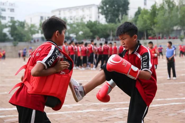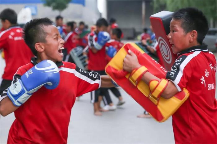 少年班院子门口的少散2-4队正在进行散打拳腿组合训练,从两个人的表情就可以体会到他们的精神状态都多亢奋了吧?小小的年龄通过一段打靶训练就打出了猛虎下山的气魄,不对,应该说是按照这个小朋友的状态,看到老虎也敢上去斗上一斗!