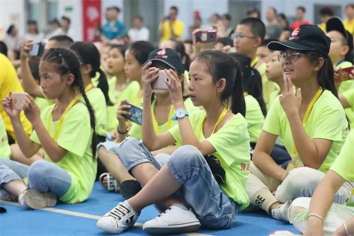 营员们首先观看了武术成果展,刀枪剑戟,腾挪跳跃,每一个节目都让营员们惊叹连连,现场很多营员拿出手机记录下精彩的瞬间。表演结束后,现场掌声经久不息。