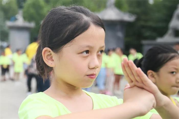 随后,营员们开始分组体验中国武术。他们跟随各自的教练认真学习简单的武术动作,尽管天气炎热,却阻挡不了营员们的学习热情,个个劲头十足。经过短时间的学习,有的营员已经能准确的完成一整套动作。
