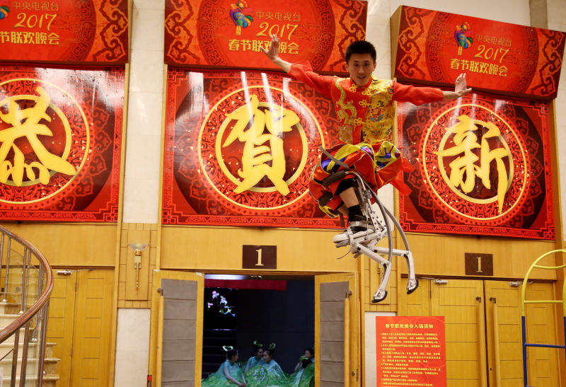 央视狗年春晚进行第三次联排 李易峰、景甜等明星大腕低调现身少林小子演绎“双雄会”
