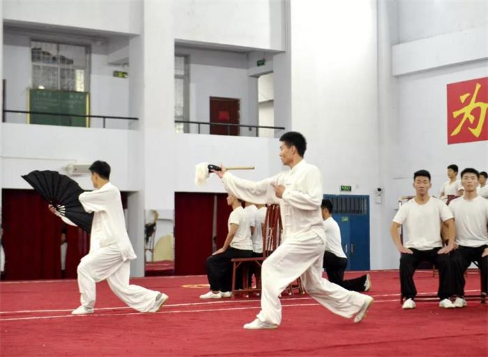 校长团参观了集团荣誉室、集团综合训练馆。在荣誉室,当了解到集团学员参加奥运会、青奥会、春晚等大型活动表演时,他们纷纷竖起大拇指,赞叹不已。在集团综合训练馆,他们观看了集团50余名学员带来的《少林雄风》《少林绝技》《江山如画》《少年中国》等精彩的武术教学成果展,他们对学员精湛的武艺赞不绝口,纷纷拿出手机记录。表演结束后,现场响起经久不息的掌声。