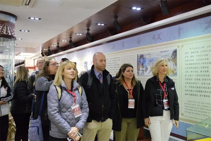 访问期间,校长团成员还观看了集团万人武术教学成果展。壮观的场面,恢宏的气势,让校长团成员深受震撼。他们用“Amazing(震撼)、Brilliant(精彩卓越)和Unforgettable (难忘)、Incredible(难以置信)”等词表达了自己的观后感。校长们纷纷表示,参观嵩山少林武术职业学院为他们的河南之旅带来了惊喜和感动,他们要把精彩的武术视频带回去给自己的学生们看,也希望在自己的学校开设武术课。